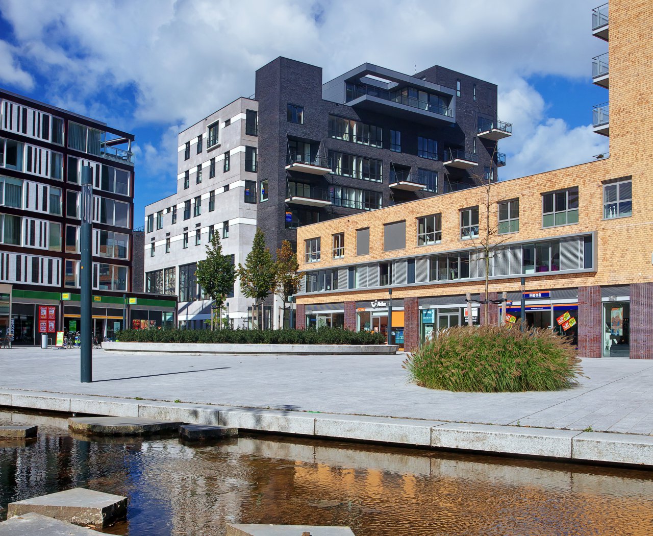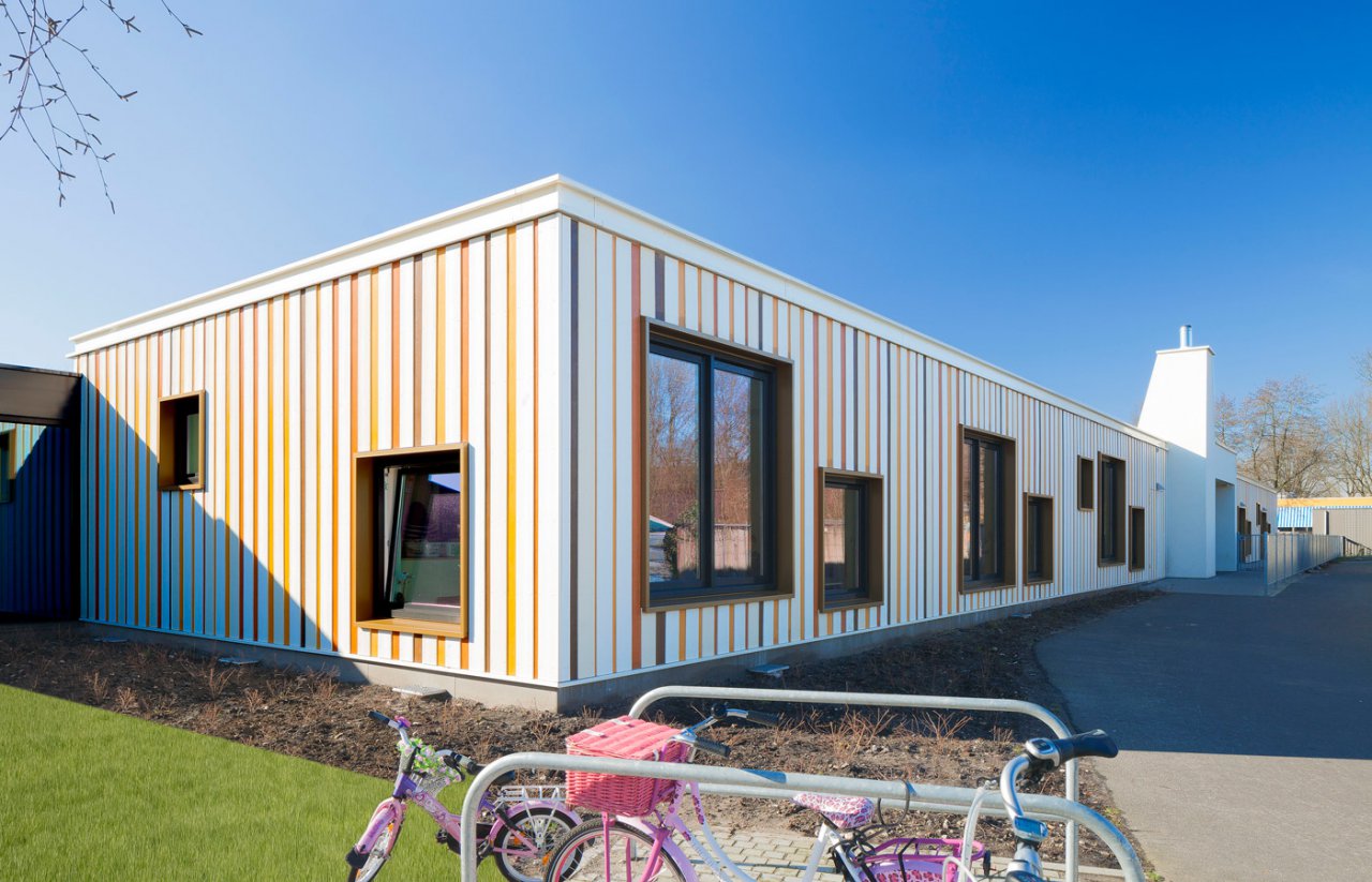 Das langgestreckte Gebäude, das die drei Schulen an der nördlichen Seite miteinander verbindet, ist das neue Integraal Kindcentrum, in dem Kinder von 0 – 12 Jahren betreut werden können. Hier finden sich eine große Gemeinschaftsküche, ein Spielraum für Kleinkinder sowie eine Kindertagesstätte.