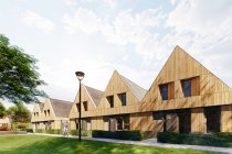 Gebäude mit Sonnenkollektoren auf der Fassade