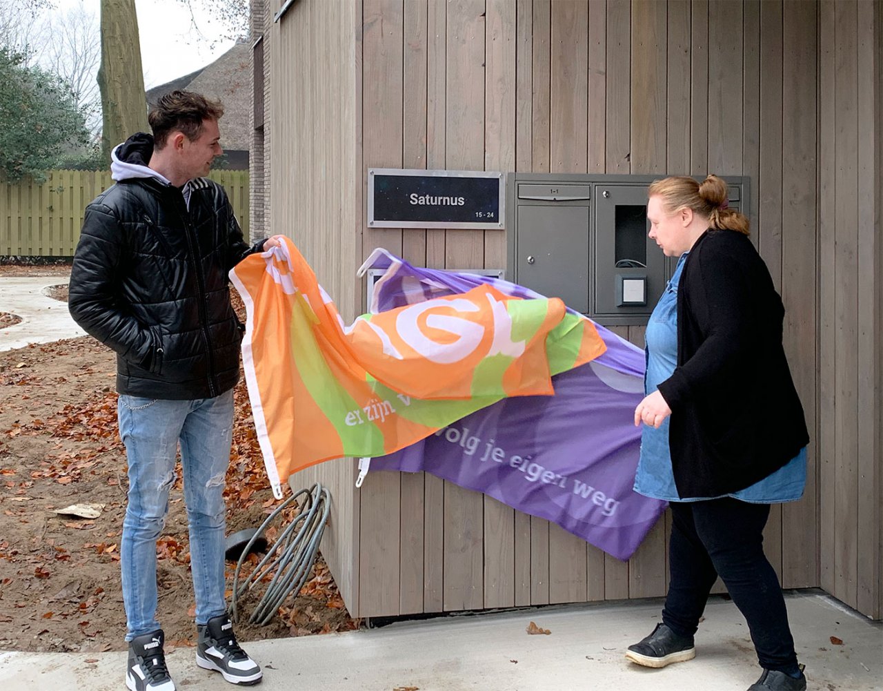 Ein festlicher Tag für die Pflegeorganisation Elver und insbesondere für Bewohner*innen und Mitarbeitende in Arnheim-Nord. Am vergangenen Donnerstag erfolgte die offizielle Übergabe des ersten Abschnitts des umfangreichen Ersatzneubauprojekts am Bakenbergseweg und Kemperbergerweg. Bewohner Michael und Bewohnerin Annelies enthüllten die Namen der ersten Häuser (Saturnus und Neptunus), die alle in dem von den Bewohner*innen gewählten Thema Universum stehen. IAA Architecten entward die Gebäude und war für das Projektmanagement während der Bauphase verantwortlich. So wie bei den Projekten in Nieuw-Wehl und Doetinchem in Zusammenarbeit mit Bauunternehmen KlaassenGroep und Wassink Installatie.