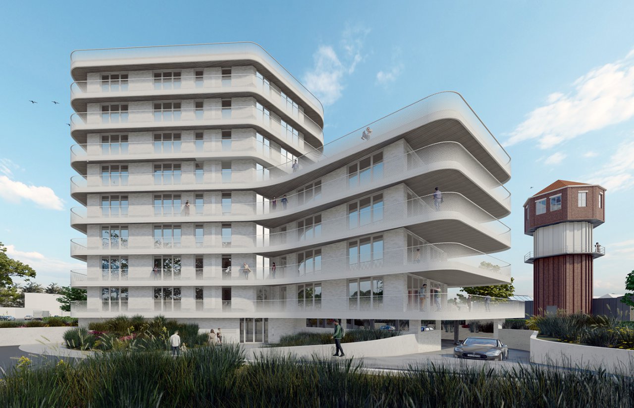 Zwischen dem monumentalen Wasserturm (dem ‚Stoftoren') und der Rotbuche entsteht ein Mehrfamilienhaus, das eine Kombination aus drei identischen Teilen mit 4, 6 bzw. 8 Stockwerken ist. Die 18 ca. 145 m² großen Wohnungen sind dreiseitig ausgerichtet, sodass morgens, nachmittags und abends immer ein Teil der Wohnung der Sonne zugewandt ist.