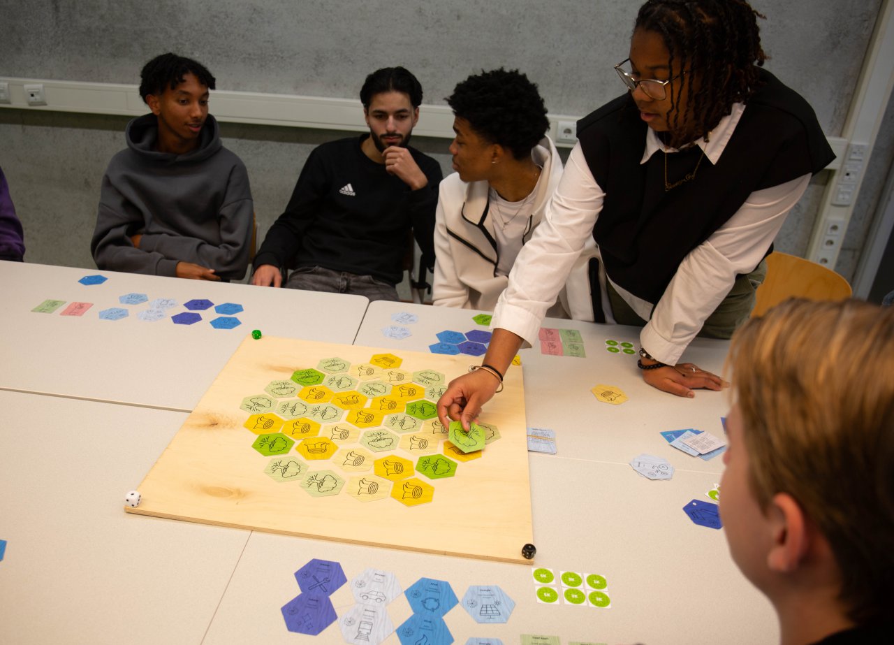 Dieser Workshop entstand aus unserer Mission für MZH De Botter und wird vom ROC organisiert, um die Verbindung zwischen Bildung und Wirtschaft zu stärken. Der Nachmittag begann mit drei hervorragenden Vorträgen zum Thema Nachhaltigkeit, wobei die Schwerpunkte auf Technologie, Architektur und Landschaftsarchitektur lagen. Danach tauchte die Gruppe in das "Serious Game" Bosrijk ein, bei dem die Studententeams vor der Herausforderung standen, Entscheidungen zu treffen, um einen imaginären Wald grüner zu machen.