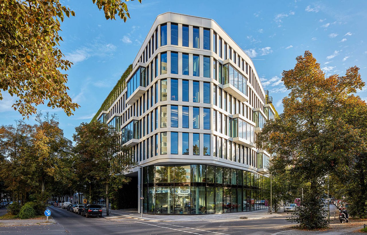 Mitten in Berlin, gerade 700m vom Potsdamer Platz entfernt, markiert ein Bürohaus mit acht Etagen den nördlichsten Punkt des Stadtquartiers Hallesche Straße. Lange Jahre war das Gebiet in Kreuzberg, in unmittelbarer Nähe zum Tempodrom und dem ehemaligen Anhalter Bahnhof, brachliegend, jetzt sieht man bereits von Weitem die weißen Fassaden mit den gläsernen Fensterboxen. Für die Cradle-to-Cradle® Philosophie wurden mit dem Büro William McDonough + Partners als Fachplaner zusammengearbeitet.